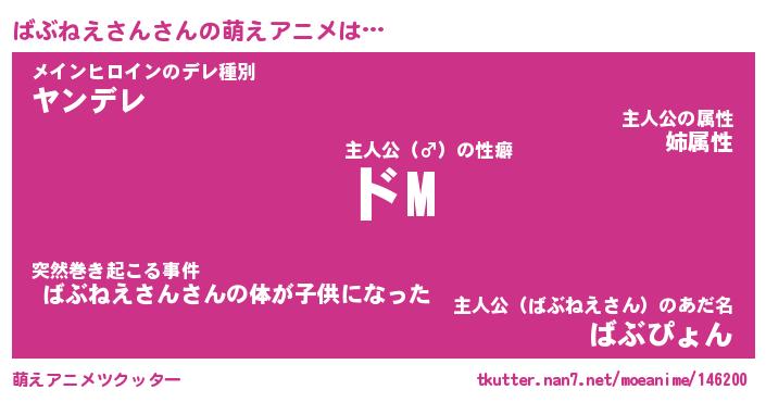| 男性向けラノベタイトル風あだ名 | 『ばぶねえさんの憂鬱』 |
