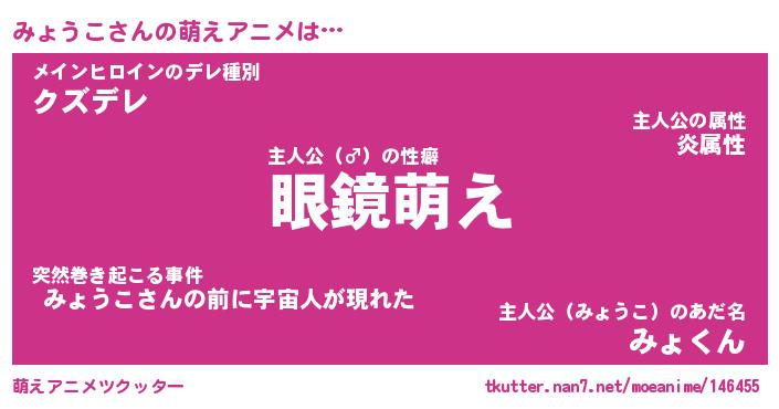 | 男性向けラノベタイトル風あだ名 | 『みょうこの憂鬱』 |