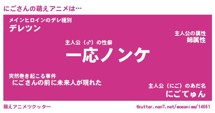 | ファンタジー風あだ名 | 『ニゴフェル』『エターナルニゴー』 |