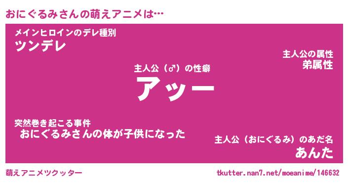 | 男性向けラノベタイトル風あだ名 | 『オニグルミアートオンライン』 |
