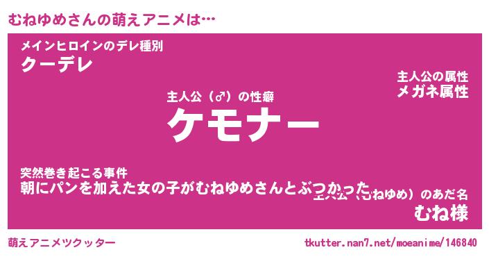 | ファンタジー風あだ名 | 『ムネフェル』『エターナルムネユメー』 |