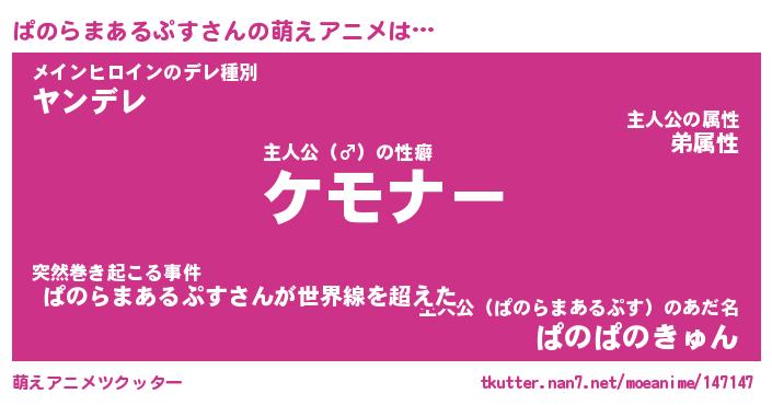 | 肩書あだ名 | 『ぱのらまあるぷす御曹司』 |