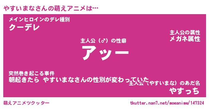 | 女子向けラノベタイトル風あだ名 | 『誰かこのやすいまなを説明してください! ~契約から始まるウェディング~』 |
