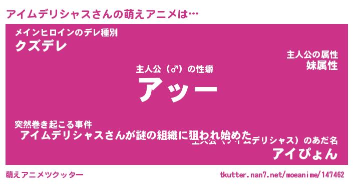 | 女子向けラノベタイトル風あだ名 | 『誰かこのアイムデリシャスを説明してください! ~契約から始まるウェディング~』 |