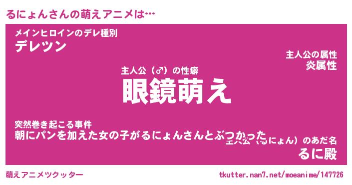 | 男性向けラノベタイトル風あだ名 | 『るにょんの憂鬱』 |
