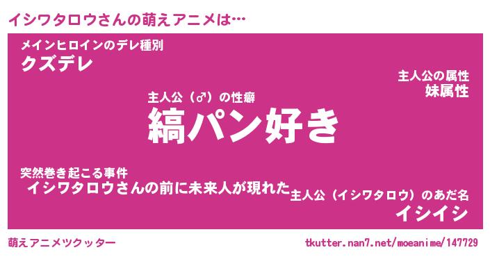 | 女子向けラノベタイトル風あだ名 | 『(仮)イシワタロウのやんごとなき事情』 |