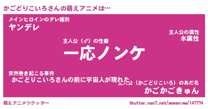 | 女子向けラノベタイトル風あだ名 | 『誰かこのかごどりこいろを説明してください! ~契約から始まるウェディング~』 |