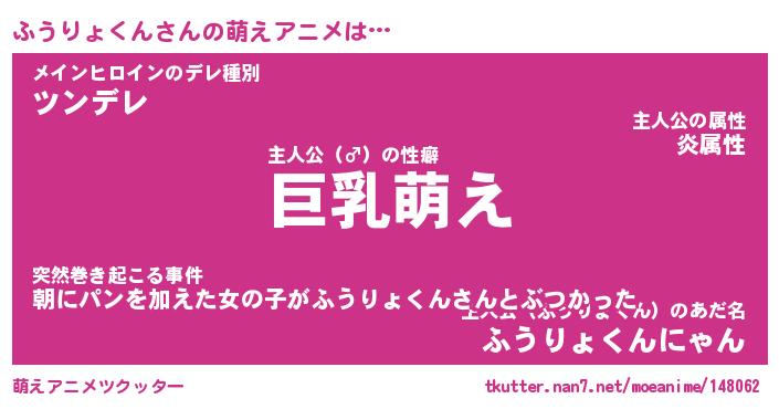| 男性向けラノベタイトル風あだ名 | 『ふうりょくんの憂鬱』 |