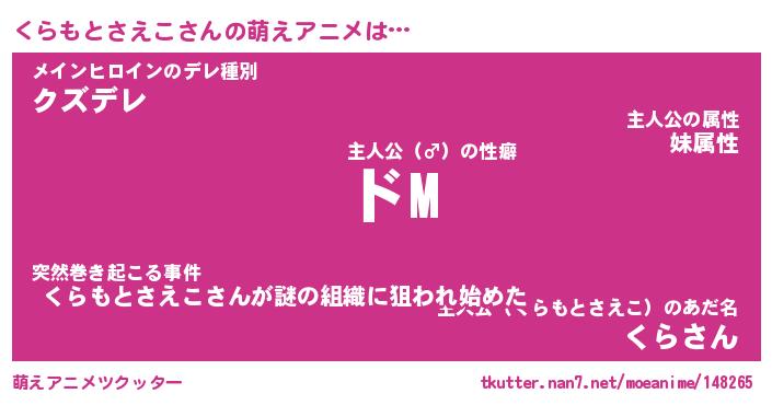 | 女子向けラノベタイトル風あだ名 | 『(仮)くらもとさえこのやんごとなき事情』 |