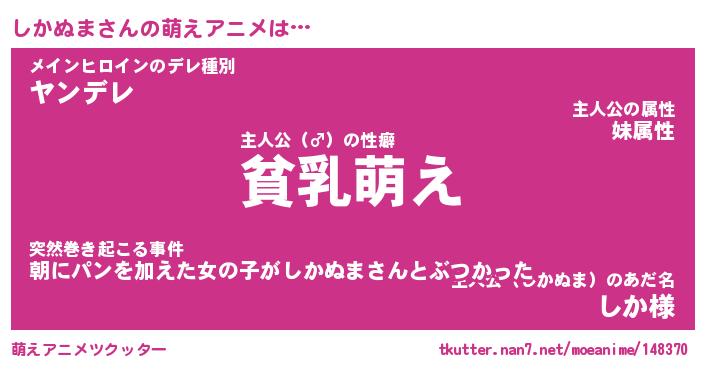 | 男性向けラノベタイトル風あだ名 | 『しかぬまの憂鬱』 |