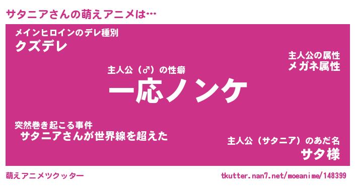 | 男性向けラノベタイトル風あだ名 | 『サタニアアートオンライン』 |