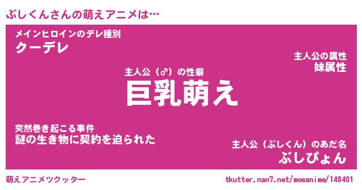 | 男性向けラノベタイトル風あだ名 | 『ぶしくんの憂鬱』 |