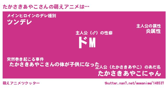 | 女子向けラノベタイトル風あだ名 | 『(仮)たかさきあやこのやんごとなき事情』 |