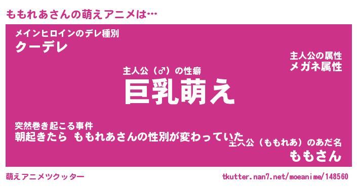 | 男性向けラノベタイトル風あだ名 | 『ももれあの憂鬱』 |