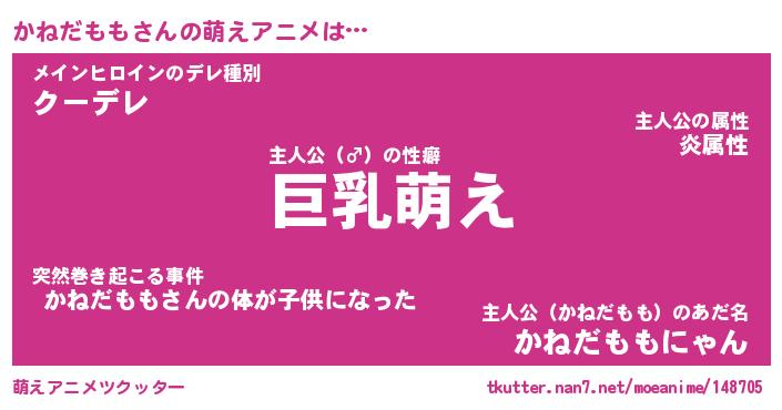 | 男性向けラノベタイトル風あだ名 | 『かねだももの憂鬱』 |