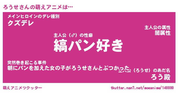 | ヘコむあだ名 | 『ろうにー』『酢こんぶ』『ろう太郎』 |