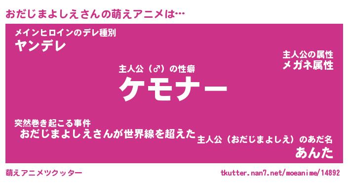 | 女子向けラノベタイトル風あだ名 | 『誰かこのおだじまよしえを説明してください! ~契約から始まるウェディング~』 |
