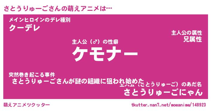 | 肩書あだ名 | 『さとうりゅーご御曹司』 |