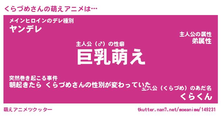 | 男性向けラノベタイトル風あだ名 | 『くらづめの憂鬱』 |