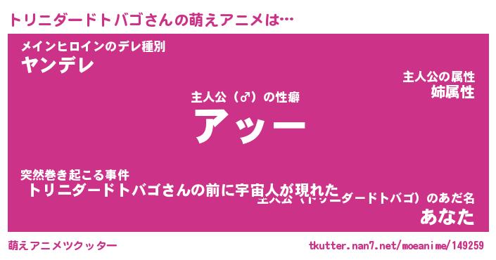 | 女子向けラノベタイトル風あだ名 | 『誰かこのトリニダードトバゴを説明してください! ~契約から始まるウェディング~』 |