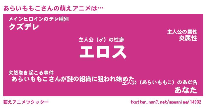 | ヒーロー風カッコイイあだ名 | 『スーパーアライモモコ』『天弓騎士アラ』 |