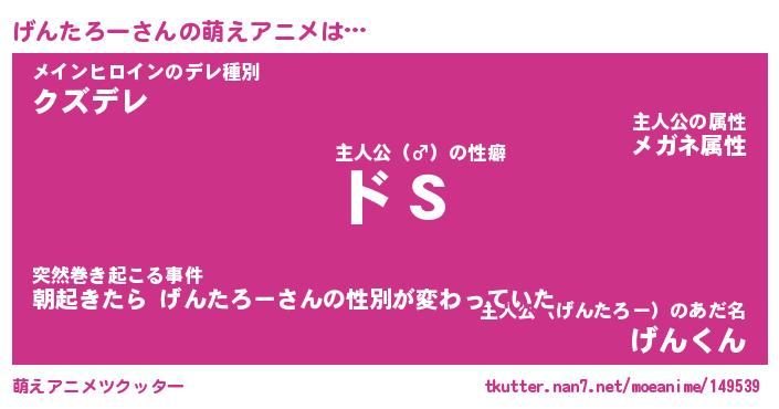 | 男性向けラノベタイトル風あだ名 | 『げんたろーの憂鬱』 |