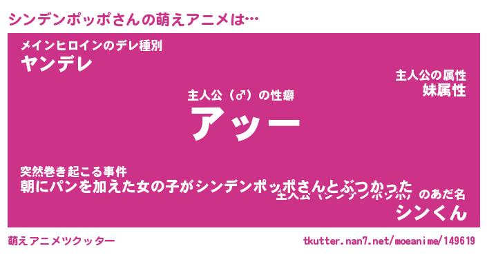| 男性向けラノベタイトル風あだ名 | 『シンデンポッポアートオンライン』 |