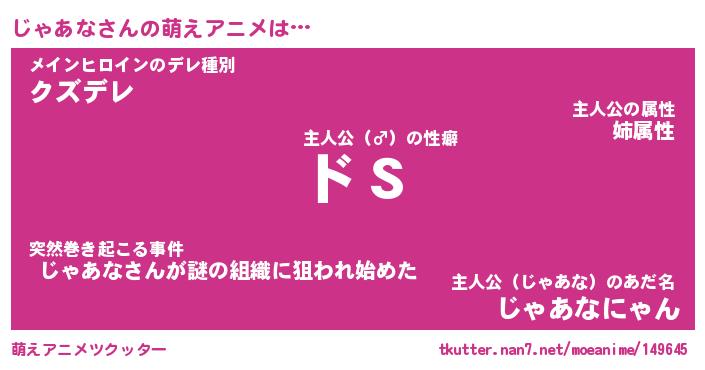 | 女子向けラノベタイトル風あだ名 | 『(仮)じゃあなのやんごとなき事情』 |