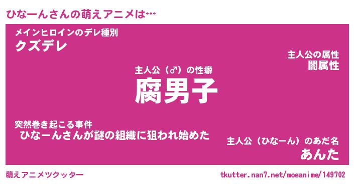 | 男性向けラノベタイトル風あだ名 | 『ヒナーンアートオンライン』 |