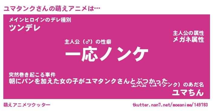 | 女子向けラノベタイトル風あだ名 | 『誰かこのユマタンクを説明してください! ~契約から始まるウェディング~』 |