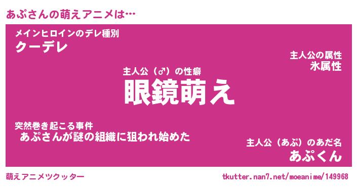 | 男性向けラノベタイトル風あだ名 | 『あぷの憂鬱』『ノーゲーム・ノーアプ』 |