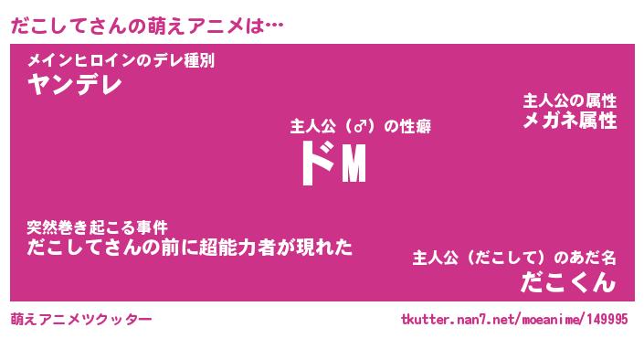 | 男性向けラノベタイトル風あだ名 | 『だこしての憂鬱』 |