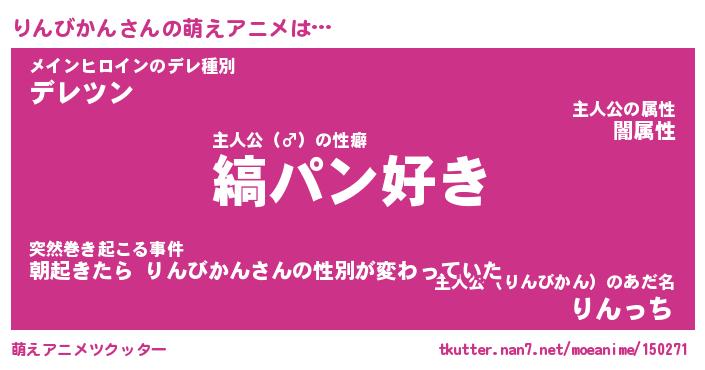 | 男性向けラノベタイトル風あだ名 | 『りんびかんの憂鬱』 |