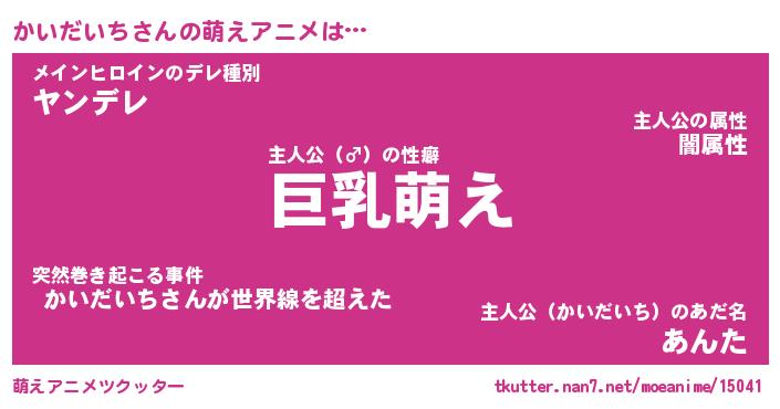 | 男性向けラノベタイトル風あだ名 | 『かいだいちの憂鬱』 |