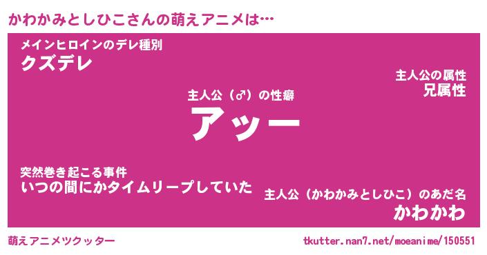 | 女子向けラノベタイトル風あだ名 | 『誰かこのかわかみとしひこを説明してください! ~契約から始まるウェディング~』 |