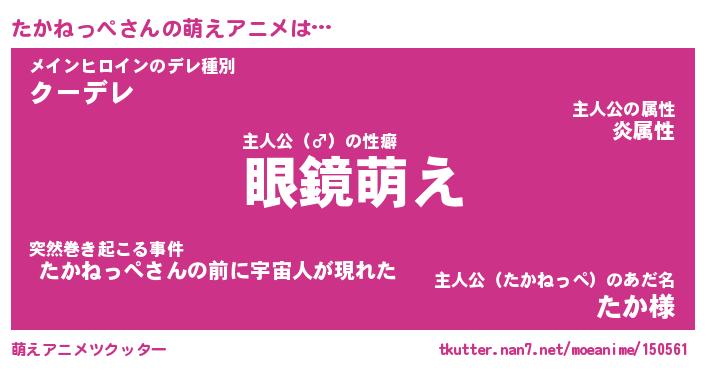| 男性向けラノベタイトル風あだ名 | 『たかねっぺの憂鬱』 |