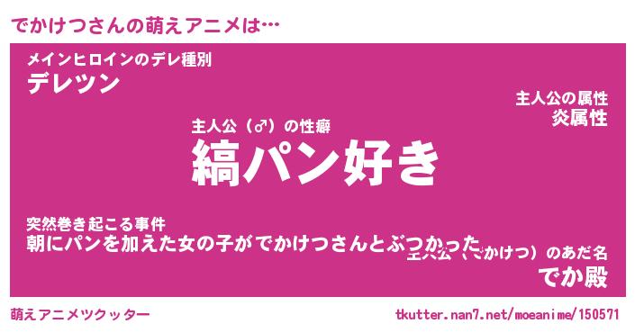 | 男性向けラノベタイトル風あだ名 | 『でかけつの憂鬱』 |