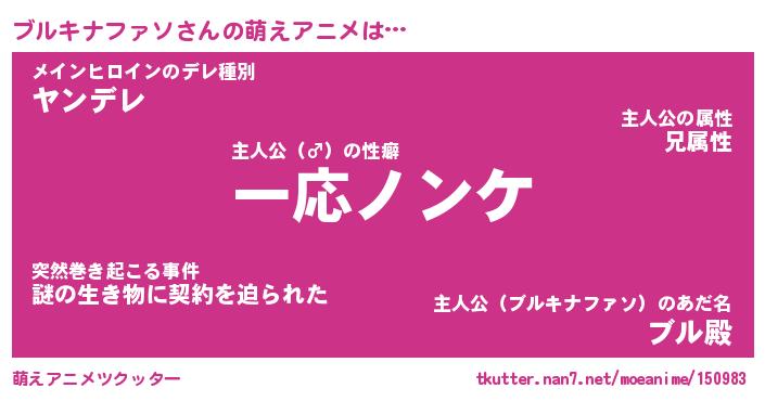 | 女子向けラノベタイトル風あだ名 | 『誰かこのブルキナファソを説明してください! ~契約から始まるウェディング~』 |