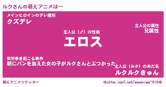 | ヘコむあだ名 | 『ルクにゅー』『酢こんぶ』『ルクお』 |