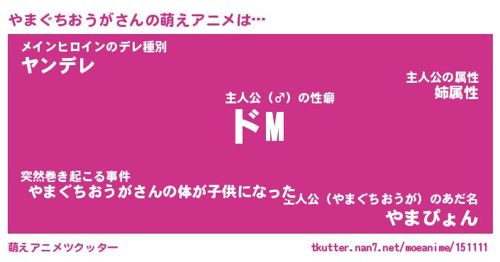 | 女子向けラノベタイトル風あだ名 | 『(仮)やまぐちおうがのやんごとなき事情』 |