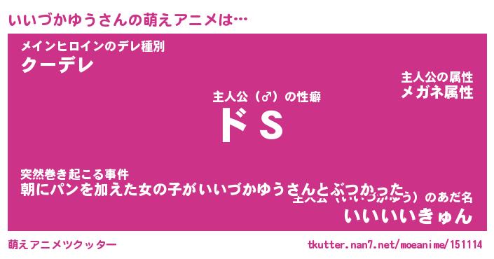 | 女子向けラノベタイトル風あだ名 | 『(仮)いいづかゆうのやんごとなき事情』 |