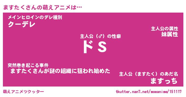 | 男性向けラノベタイトル風あだ名 | 『ますたくの憂鬱』 |