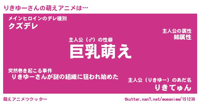 | 男性向けラノベタイトル風あだ名 | 『りきゆーの憂鬱』 |