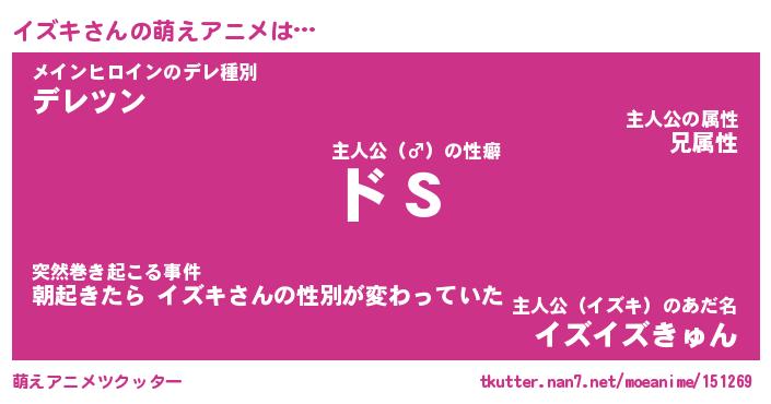 | 男性向けラノベタイトル風あだ名 | 『イズキの憂鬱』 |