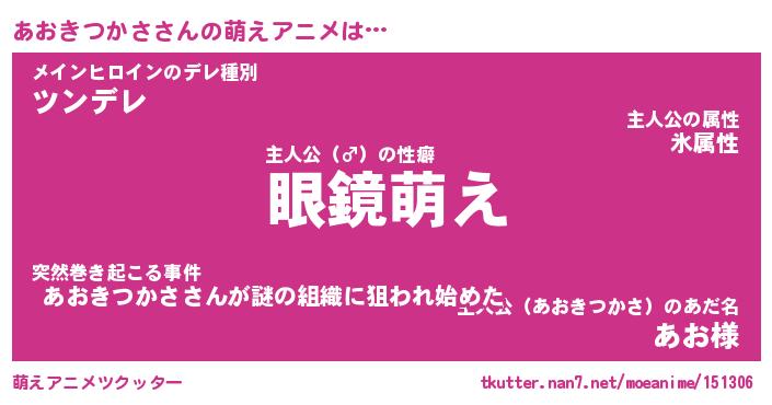 | ヒーロー風カッコイイあだ名 | 『スーパーアオキツカサ』『幻影騎士アオ』 |