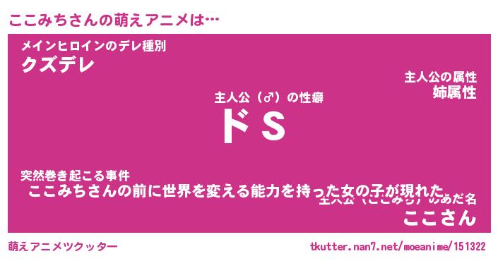 | 男性向けラノベタイトル風あだ名 | 『ここみちの憂鬱』 |
