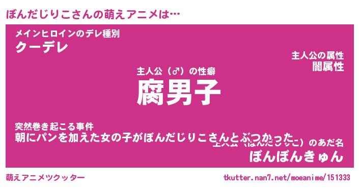 | 料理風あだ名 | 『節約★ぼんだじりこと油揚げの玉子丼』 |