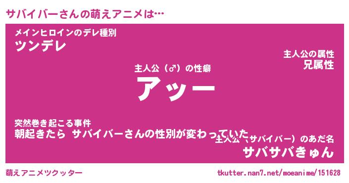 | ファンタジー風あだ名 | 『サバフェル』『エターナルサバイバーー』 |