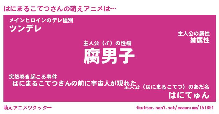 | ヘコむあだ名 | 『はににゅー』『牛乳』『はに太郎』 |