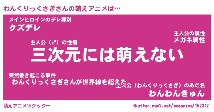 | 女子向けラノベタイトル風あだ名 | 『わんくりっくさぎ姫と円卓の騎士』 |